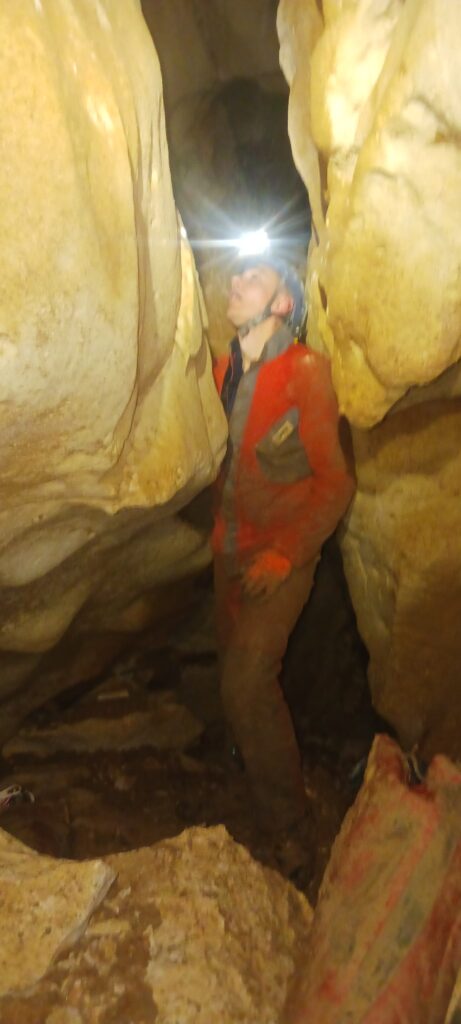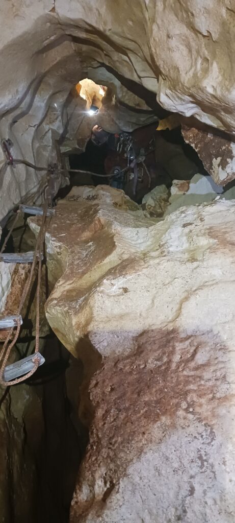 Après quelques péripéties pour obtenir la clef de l’entrée haute nous entrons dans Cuchon à 3 vers 19h00 ce vendredi soir pour poursuivre l’exploration réalisée en duo avec Ulrich en décembre 2024.